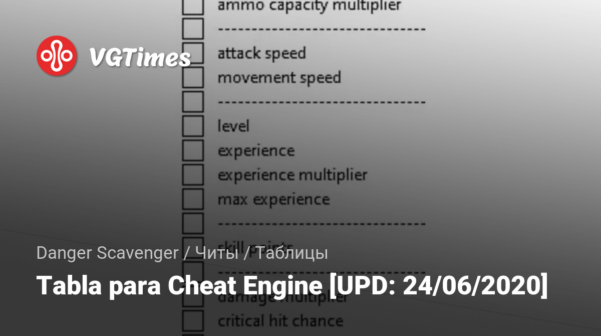 Tabla para Cheat Engine [UPD: 24/06/2020]